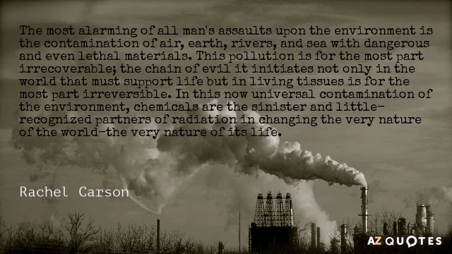 Carson’s book caused the removal of DDT from U.S. markets, spawning the environmental movement, and forcing the U.S. to implement the Clean Air & Water Acts of 1973 and 1974, respectively. But the damage was done and today we are suffering the dire consequences with our ill-fated health.